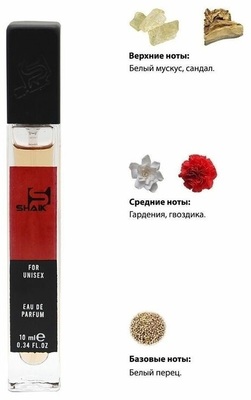 Мягкий, игривый, окутывающий и загадочный древесно-мускусный унисекс парфюм с легкими цветочными акцентами. В ароматической композиции тонкий, мерцающий и манящий запах нежнейшего белого перца медленно и грациозно соединяется с пьянящим сладковато-пряным ароматом сливочной гардении. Группа ароматов: цветочные, древесные. Верхние ноты: белый мускус, сандал. Ноты сердца: гардения, гвоздика. Шлейф: белый перец. Конкурентное окружение: Attar Collection Musk Kashmir.