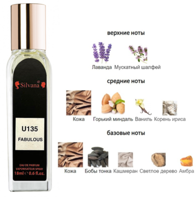 Silvana Парфюм «FABULOUS» UNISEX 50ml Пол: Унисекс Категория: Кожаные Верхние ноты: масло горького миндаля, бобы тонка Ноты сердца: аккорд корня фиалки, кашмеран Базовые ноты: аккорд кожи, масло мускатного шалфея